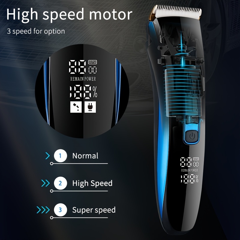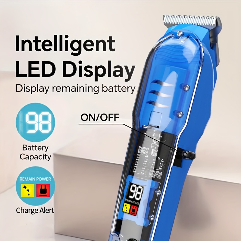 Rechargeable Professional Electric Hair Clipper, Transparent Shell Shaped Hair Trimmer, Cordless Portable Haircut Kit for Men Women Salon, with LED Display Screen