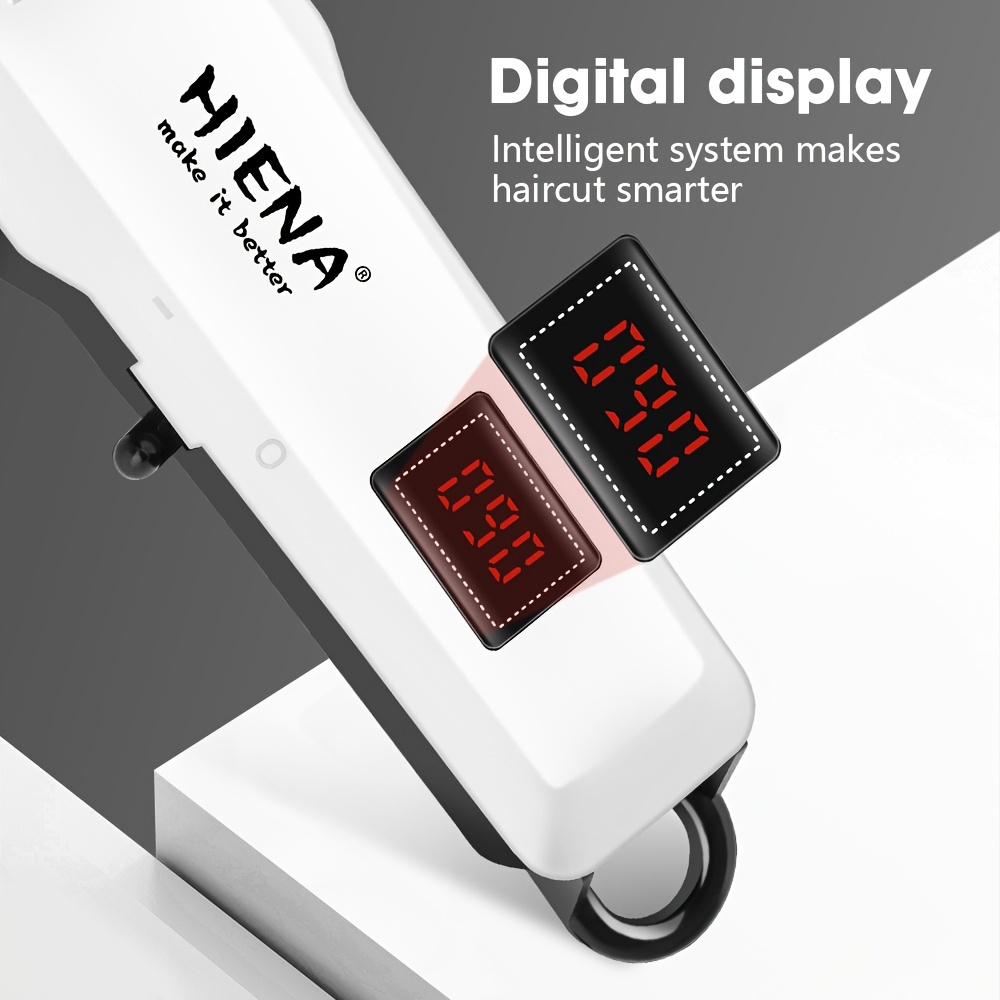 HIENA Electric Hair Clipper White Trimmer Set USB Rechargeable Cordless Hair Cutter with Storage Bag and Comb Professional LCD Display Barber Clippers for Men’s Grooming Gift