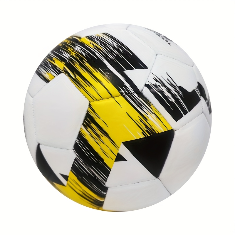 Size 5 Machine-Stitched PVC Football – Durable & Burst-Resistant Training & Match Ball with Abstract Geometric White/Yellow/Black Design for Teens & Adults, Match Soccer Ball | Dynamic Sports Gear | Stitched Soccer Ball