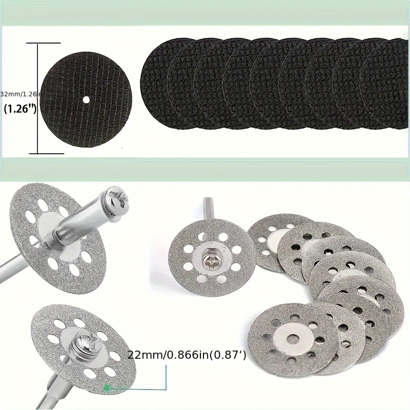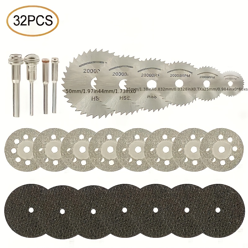 32pcs Mini Rotary Tool Kit for Marble, Tile, Plastic, Wood, Stone Pipe and Glass Wheels, includes 10 resin disks, 10 diamond wheels and 6 saw blades